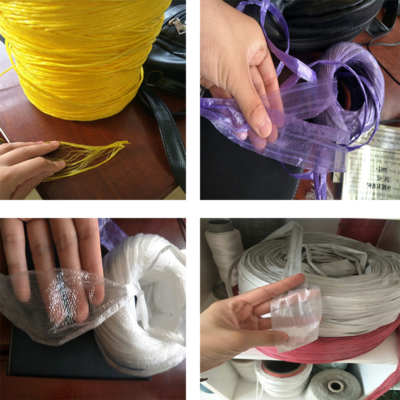 撕裂膜捆扎繩廣泛應(yīng)用于農(nóng)業(yè),多年來(lái)一直深受多國(guó)客戶的青睞。新料、回料均可生產(chǎn),亦可用于啤酒捆扎、打包繩等。其工藝流程如下:塑料顆粒——加熱擠出——冷卻成型——自動(dòng)分絲——加熱延伸——牽引卷繞-成品。加以高速加捻打軸機(jī)輔助,成型的軸狀產(chǎn)品極大的提高了繩子的拉力。